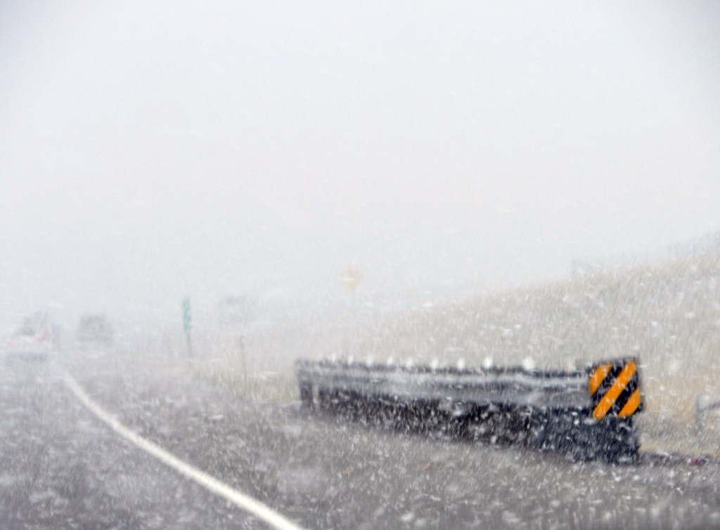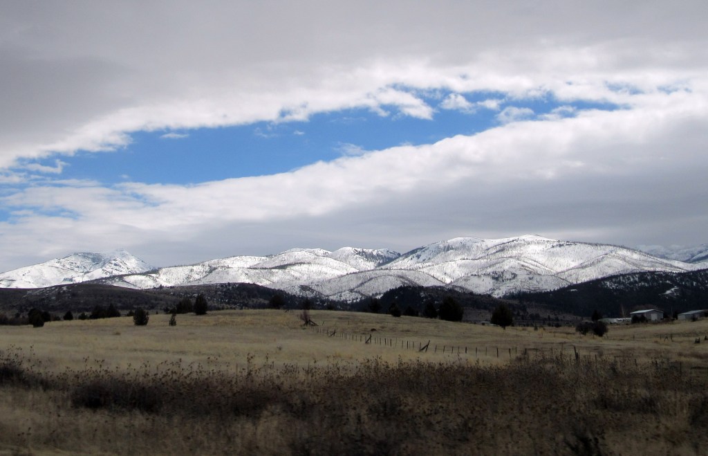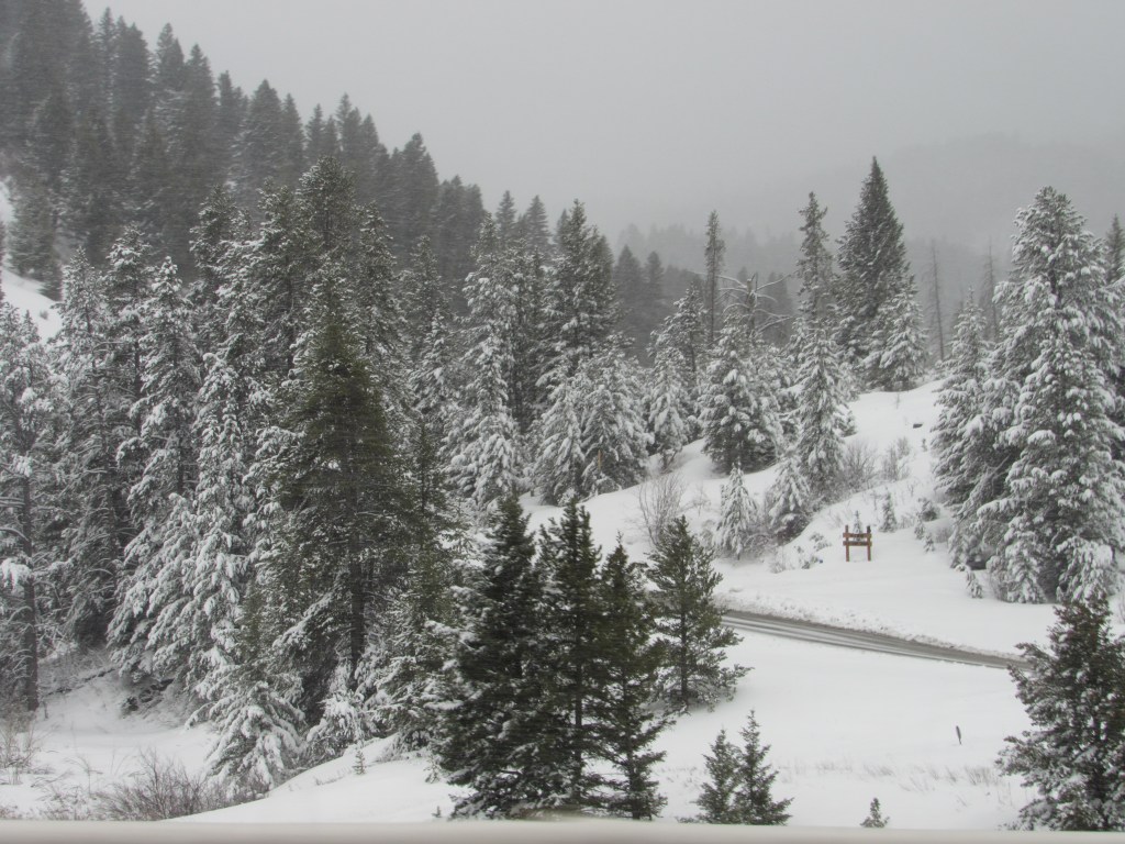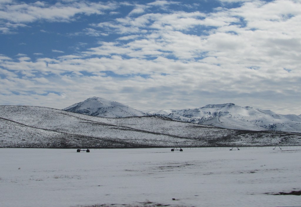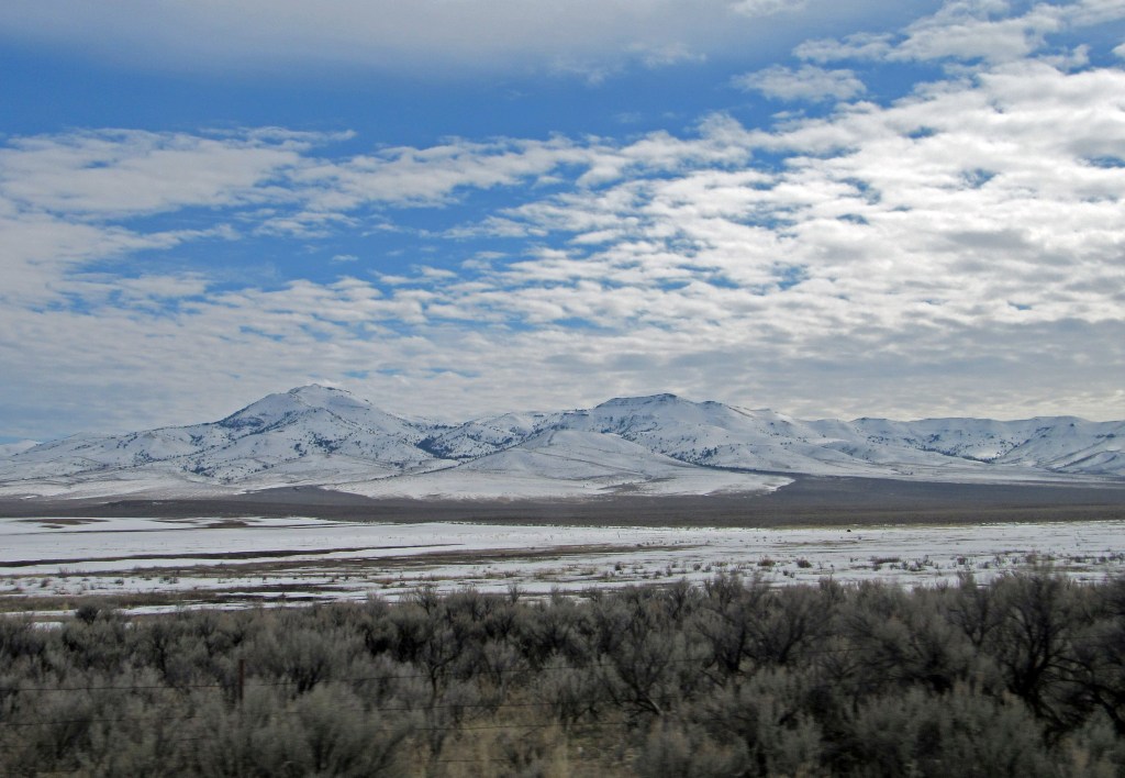 They say the best laid plans…… We did not predict (nor plan) a 2-hour delay just east of Boise, ID – there was a major incident on I-84 that closed it for several hours. But we finally detoured and got moving again…. Though the morning was late, it was pleasant, and at first the snow was at a distance (where it is best)… Even though it was closer, the roads were dry.