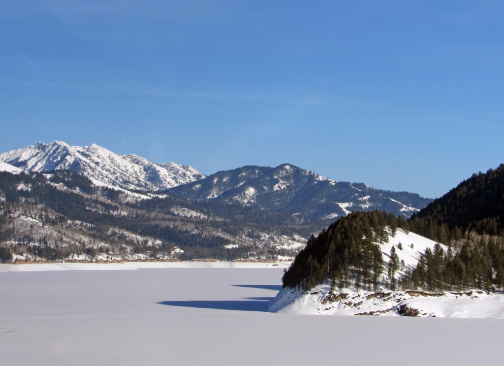 Heading to Wyoming, I saw my first frozen snow-covered lake – Palisades Reservoir…