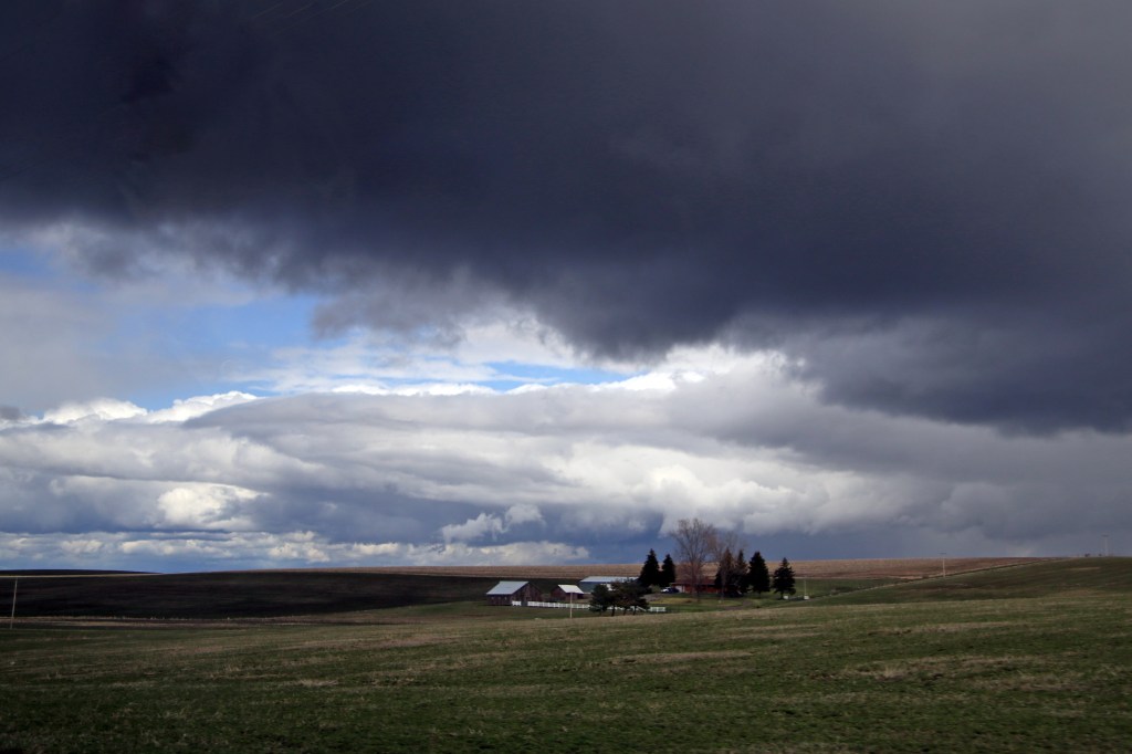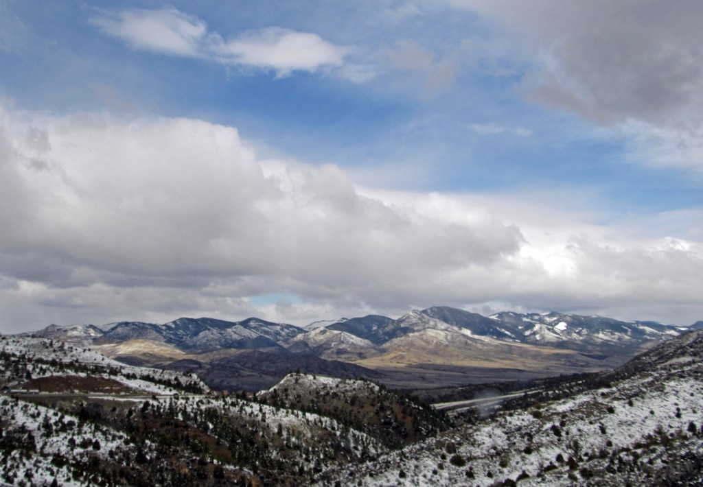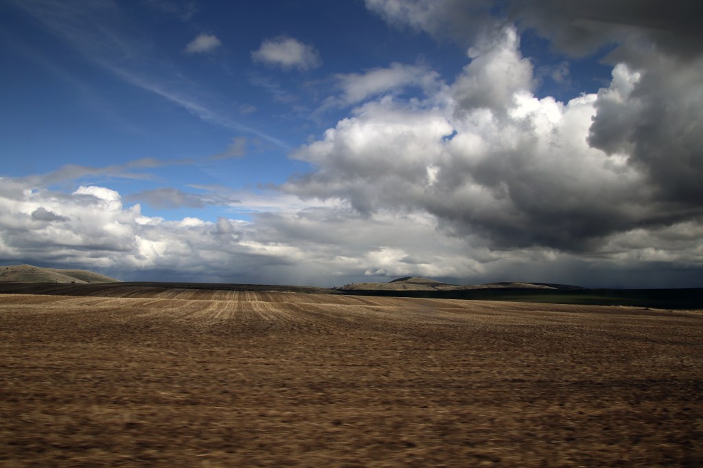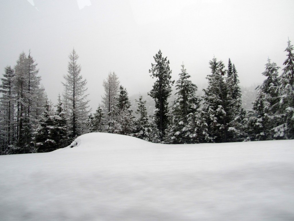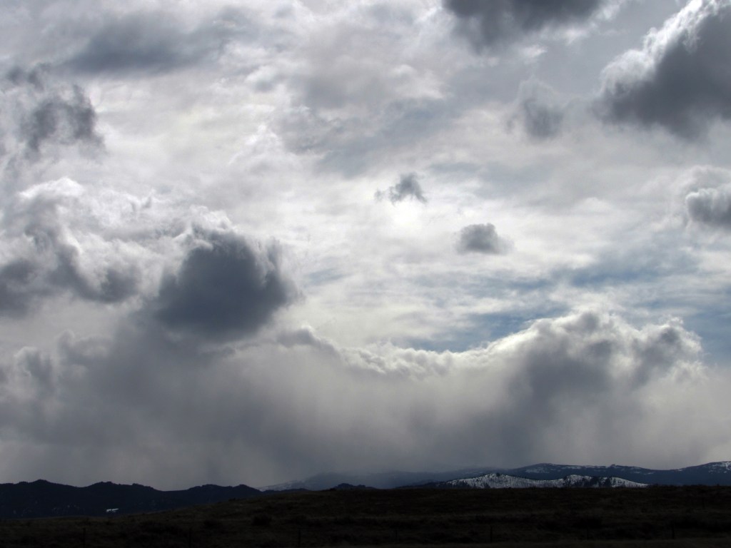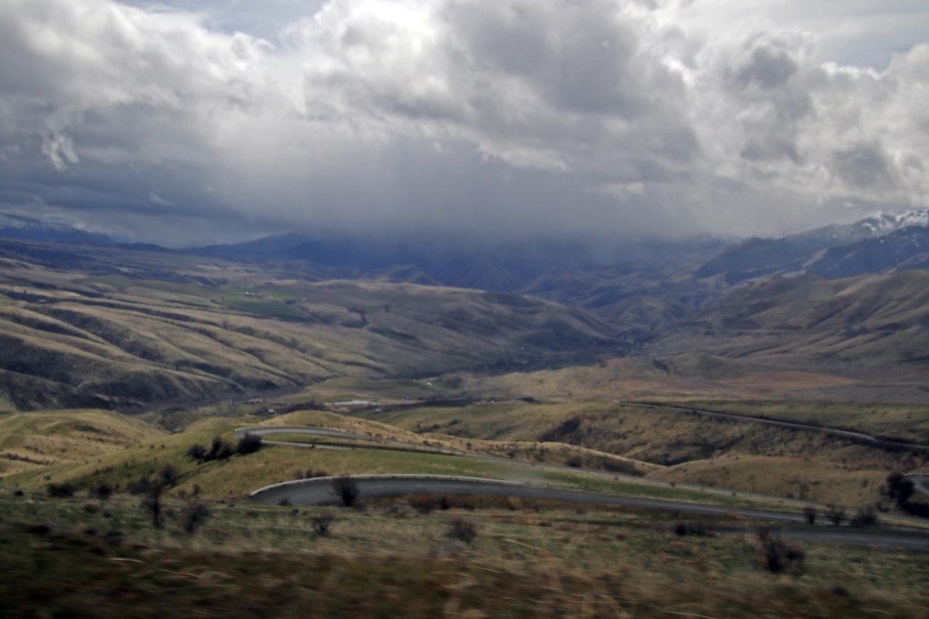 Idaho decided we needed to see a little more weather. We experienced rain, snow, sleet, hail, sunshine and more than one of them at the same time in certain stretches. The cloud formations were magnificent though (when they weren’t bombarding us with rain or snow).