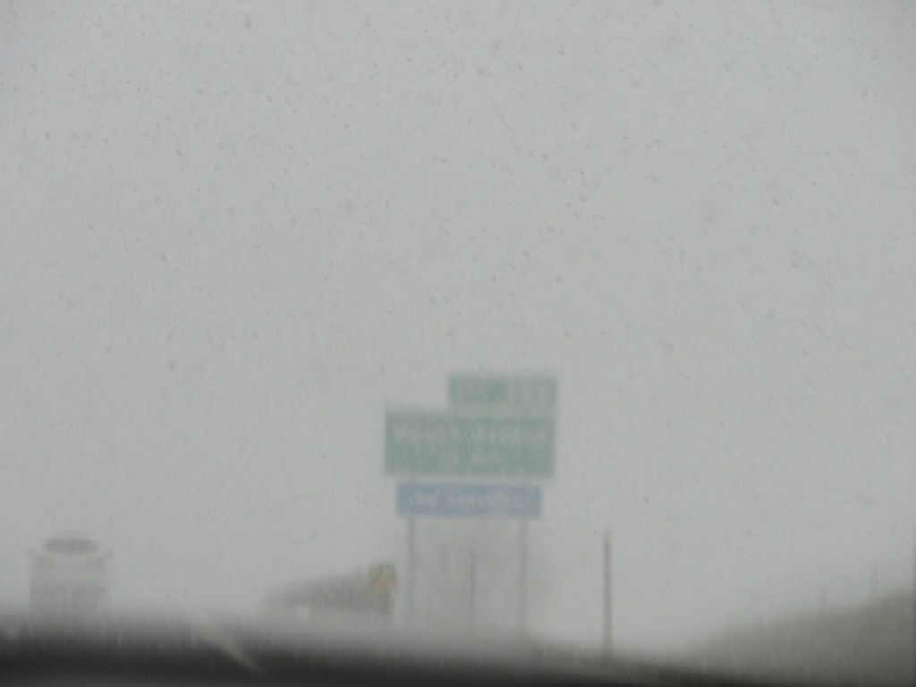 It finally decided to blow up our way and we drove a little while with flakes descending on the windshield. Koby did not scold the weather this time. I think he was too tired to try and put up a fight.
