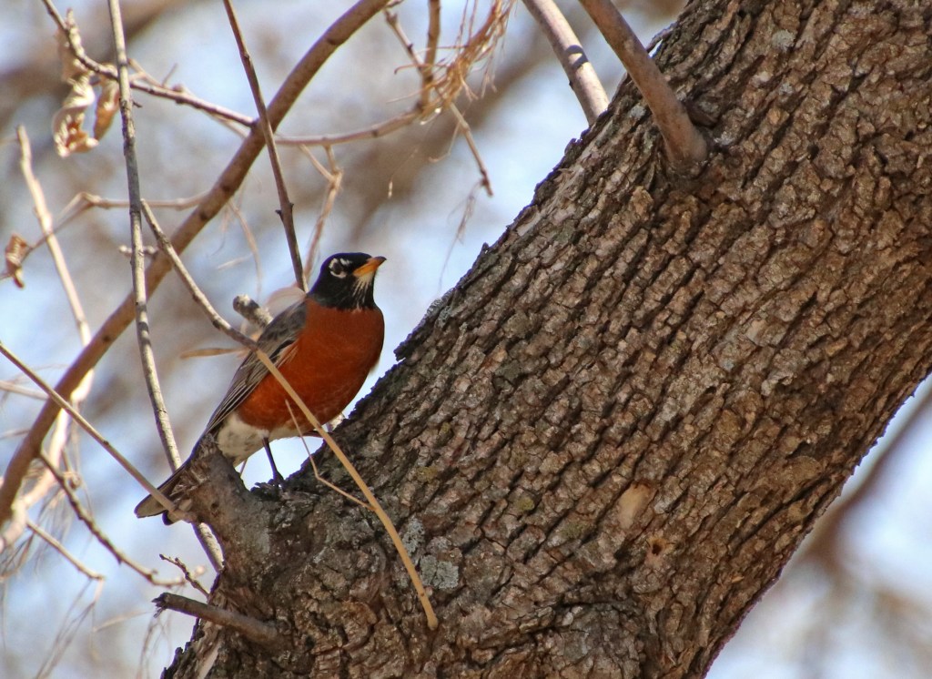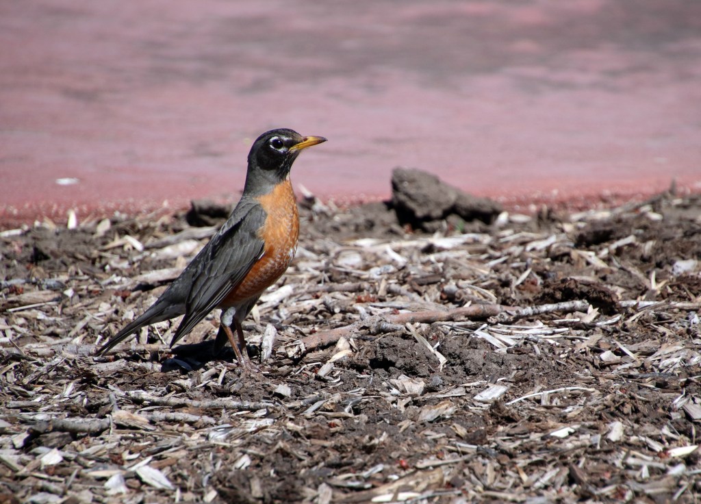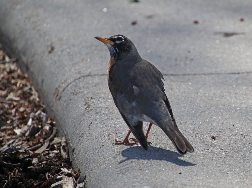 At the rest stop, the Robins were out in force… rockin’ it all over the ground and up in the treetops (presumably all day long) – they were hoppin’, but not bobbin’ or singing their song though… And the 1st one seems to be thinking intently about something…