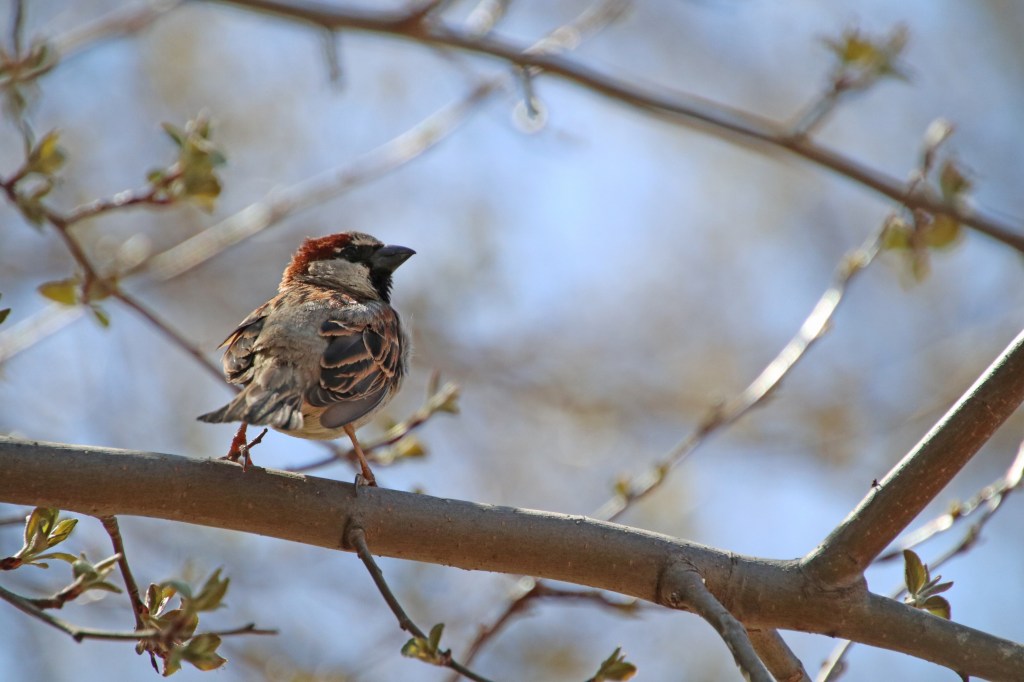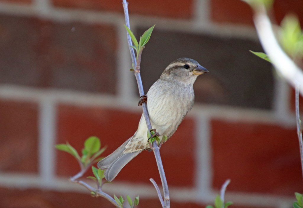 But a few House Sparrows did sing out – chirping up a storm… I managed to get pics of both a female and a male..