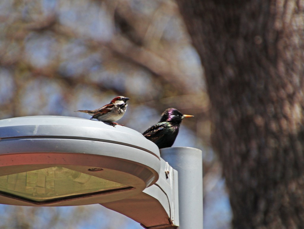 And one male who decided to hang with a Grackle for a bit – definitely rocking different wardrobe styles, but managing to coexist despite their differences.